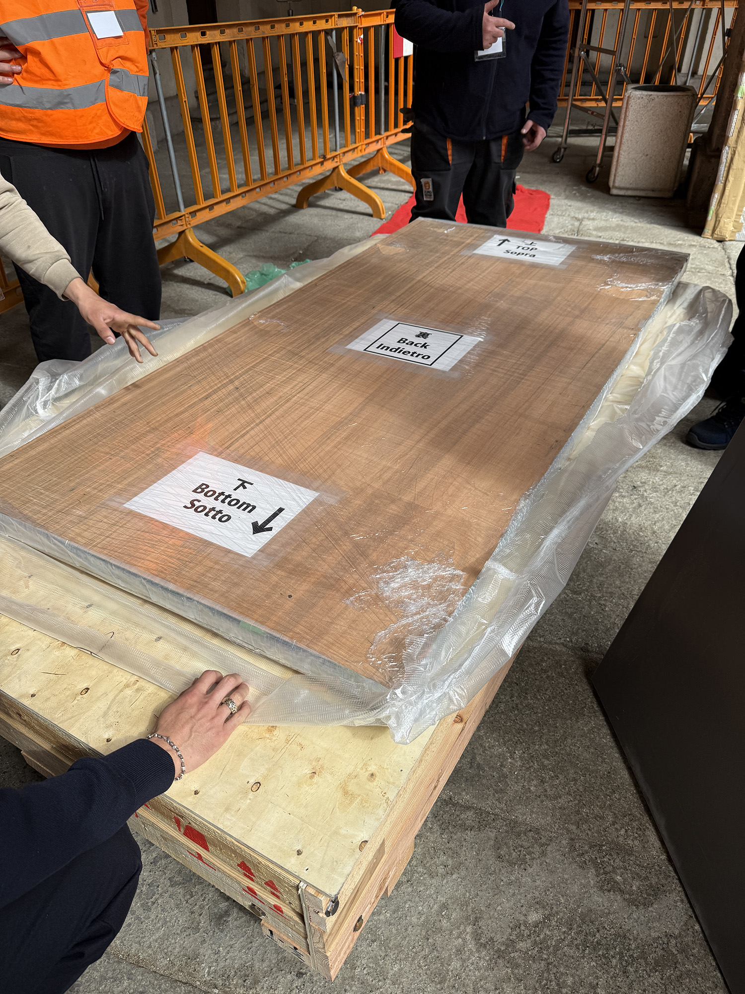 今年は不幸な戦争が始まってしまったことで、荷物の運搬にもかなりの影響が出て、3月初旬には、もしかしたら運ぶことが不可能になるかもしれないという情報が入り、作品制作も急ピッチで進めてきた経緯があります。無事にミラノの地に運ばれ、目の前で再会できる喜びと安堵の時間です。