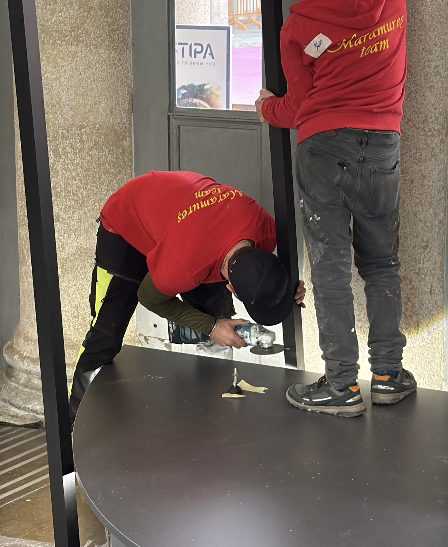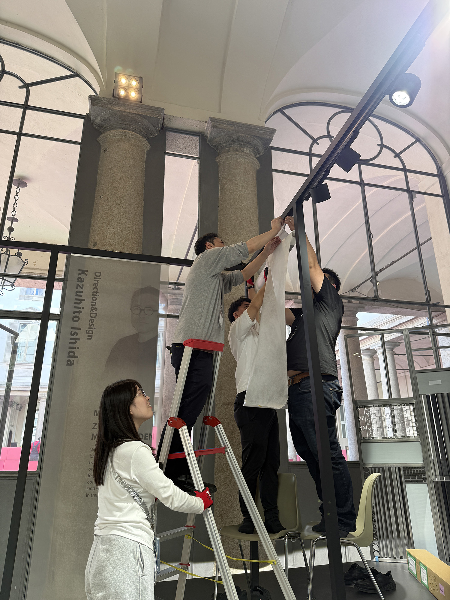 安堵ばかりの時間はありません。現場では現地施工業者による設置が始まっています。石田デザインの設計の通りにことは進むのか…。何せここはイタリア、思い通りにいかないのが常なので、細かくチェックしながら、空間の質を上げていかなければいけません。